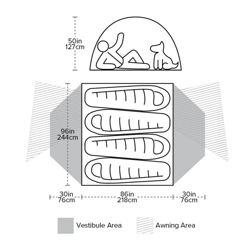 - DAC poles with 4-way, high-volume hub design provide strength, stability, and generous livable space