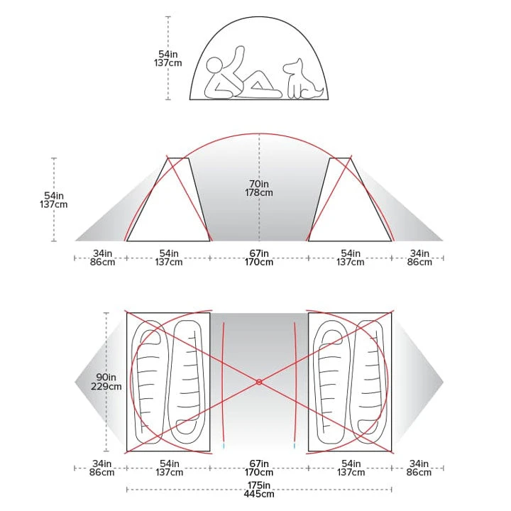 Each sleeping area features two entries/exits; one into the oversized vestibule and one to the exterior of the tent